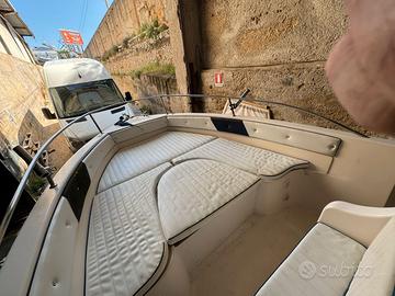 Buone condizioni, motore Mercury 150 cv 4 tempi circa 200 ore di moto.Impianto doppia batteria. Verricello elettrico. Vasca per il vivo. Portacanne. GPS Furuno professionale. Cuscini a cellula chiusa. Stereo. Doccetta. Eventuale canna con mulinello elettrico per traina e bolentino di profondita'.Prezzo moderatamente trattabile. Tel 3404820626