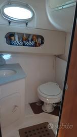 Inoltre è dotata di boiler acqua calda, tv, frigo, tendalini nuovi con chiusura totale per campeggio nautico, verricello elettrico con comandi sia in consolle sia a prua, teak in cabina e in coperta, impianto stereo.