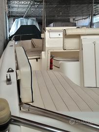 La barca è molto bella con ampio prendisole e pozzetto posteriore anch'esso ampio e comodo con tre cuscini di seduta. Perfetto il motore sempre revisionato e affidabile che senza sforzo e con poco consumo consente una velocità di crociera di venti nodi con massimi anche di 25/30 nodi. Omologata per sei persone. Tutta la dichiarazione di conformità in mio possesso. Le foto non sono perfette perchè la barca è in cantiere ma visibile sempre a Nocera Inferiore. La barca è lunga 20 piedi (6,60 m).