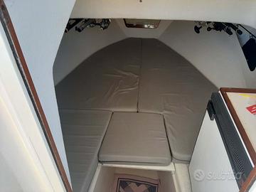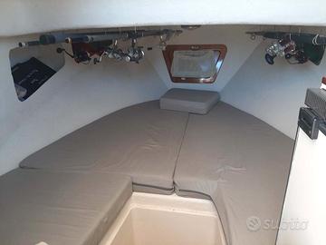 Prestazioni planata da 11 nodi, crociera 16/17 nodi, massima 21/22 nodi. Consumi 35 litri ora a massima velocità. Dotazioni: flaps regolabili, letto doppio a V, WC marino manuale, frigorifero 12V, pompa acqua salata, pompa acqua dolce, pompa autoclave, 3 pompe sentina, salpa ancora 2023, 25 mt catena, illuminazione interna e gavoni a led, carica batteria 220V, ripartitore di carica, 2 gruppi di batterie, due serbatoi gasolio inox per totali 220lt, teli diurni strumenti, teli notturni, giro plancia, tendalino acciaio 2022, cuscineria interna, cuscineria esterna anno 2021, impianto elettrico nuovo 2016, bussola. Marmitta riduzione rumore inox anno 2022, radio VHF Raymarine, GPS Raymarine A98 con Raymarine CP200 Side Vision Fishfinder (visione 3D), riproduttore musica BT 2022, casse, presa banchina 220V 2021.