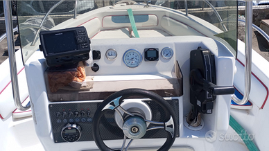 Barca solida con molti accessori: scaletta,supporto ausiliario,sentina,serbatoio fisso con indicatore,stereo,tendalino,cuscineria completa,tavolo,GPS,ecoscandaglio.Monta un 40 mercury pro con meno di 500 ore regolarmente tagliando. Tutto anno 2014 visibile presso la nautica fanelli.