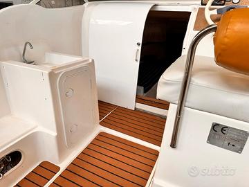per passaggio a barca più grande vendo marinello cabin 20...barca in ottime condizioni con nessun lavoro da fare, 6.20 metri x 2.30 motore honda 90 cv con poco più di 400 ore tendalino di poppa e tendalino anche sul predi sole di prua salpa ancora elettrico doccetta di poppa 30 litri serbatoio fisso benzina da 80 litri pompa di sentina automatica luci di via prese usb e accendi sigari luci led..consumo 22 litri ora completa di carrello stradale da 15 quintali appena revisionato...barca in mare per 3 settimane/ anno poi lago e rimessata sempre in capannone,da visionare