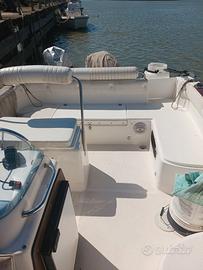 Vendo MARINELLO EDEN 20+ MOTORE MERCURY 80 CV 4 TEMP PERFETTA. La barca è caratterizzata da una eccezionale tenuta del mare sia in navigazione ma sopratutto quando si è ancorati, non rolla e non beccheggia grazie alla sua eccezionale larghezza dello scafo che la rende unica nel suo genere. Larghezza 2.49 mt!!.. Inoltre l interno della barca è estremamente vivibile grazie alle dimensioni ed dotata di ampi spazi interni calpestabili Ideale per la famiglia che vuole passare in completa sicurezza bellissime giornate in relax grazie anche al frigorifero ed è ideale per pranzi, aperitivi a bordo ed anche per chi vuole andare a Pescare perché è dotata di ogni accessorio utile per praticare tutti i tipi di pesca sia costiera che di altura La barca è pronta alla BOA ed è disponibile per qualsiasi prova in zona ostia fiumicino. MOTORE MERCURY 80 CV 4 TEMPI DEL 2010 con sole 400 ore di moto. Praticamente nuovo. MOTORE AUSILIARIO NON È COMPRESO. Inoltre la.barca è sempre stata rimessata in ACQUA DOLCE. Fatta manutenzione che comprende (olio motore, olio piede, girante, zinchi, filtro benzina,filtro olio, filtro decantatore tutto ORIGINALE MERCURY, non necessita di manutenzione pronto alla boa) Dotazioni di bordo: Verricello salpa ancora Frigorifero/frigobar 12 volt funzionante Ancora con cima e catena Radio vhf Antenna vhf Luci di via a LED Luce di fonda Caricabatterie 12 v 2 batterie 74 ampere 2 Attacchi prese 12v Volante con pomello Radio stereo BlueTooth 4 casse stereo 5 salvagente 1 cima con ciambella salvagente 2 pompe di sentina Pompa acqua dolce Pompa acqua salata Serbatoio acqua dolce 70 lt Serbatoio benzina 100 lt Ecoscandaglio lowrance hds 7 pollici 6 portacanne 4 portacanne da riposo Tavolo con asta e supporto Doccia acqua dolce Ampi gavoni per stivare accessori MOTORE AUSILIARIO NON È COMPRESO. oLunghezza 5.90 o Larghezza 2.49 o Materiale di costruzione: vetroresina o Motorizzazione max 150 cv o Portata persone 7 o Peso barca senza motore 780