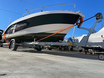Accessori: serbatoio benzina 80 Litri + serbatoio motore ausiliare con spinotto originale 25 Litri, scaletta risalita, radio bluetooth,4 reggi canne acciaio, ancora 6 kg, catena + cima circa 85 metri, dotazioni 6 miglia per 6 persone, ecoscandaglio Garmin 6 pollici, guancialeria originale Marinello colore grigio come nuova, tendalino, possibilità posto barca pagato fino a 31/12 zona golfo Follonica.