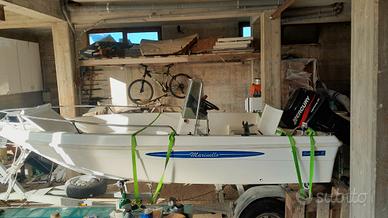 vendo barca lung 4.80 con motore principale 40 kv 2t mercuri con miscelatore motore secondario 4 kv 2t accessori: tendalino ,GPS garmin, doccetta ,portacanne ,dotazioni di bordo entro 3 miglia escluso carrello € 5.000,00 trattabili.