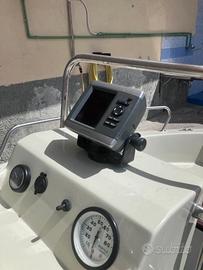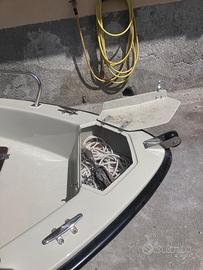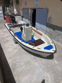 Barca cantieri Marino Olbia, la barca ha toccato l'acqua tre volte, sempre rimessata al coperto. Motore mercury 40 cv con miscelatore e trim elttrico, avviamento elettrico, stacca batteria, filtro benzina, serbatoio da 45 litri, imbarco carburante dal lato consol di guida, timoneria nuova e sovradimensionata , scatola guida nuova, dotazione di bordo ancora nel cellopan, con giubbotti da 150 Newton, razzi e boette oltre le 6 milgia, portacanne in acciaio inox (non ottone cromato) Remi in legno tipo gozzo, scalmiere in acciaio inox, luce 360 gradi, curegge in acciaio inox, prendisole, scaletta, tendalino, ecoscandaglio con gps Garmin con trasduttore di poppa,