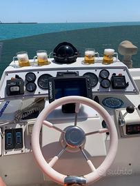 Imbarcazione 40 piedi Fly con impianto elettrico revisionato e motori appena tagliandati. Marchio celebre per la qualità e lo spessore delle resine con cui è realizzata. Motori storici Iveco Aifo 6 cilindri turbocompressi da 320 cv ognuno (i Diavoli Rossi, instancabili e dai consumi contenuti). Stanza matrimoniale con bagno annesso comprensivo di box doccia. Altra stanza con due letti singoli in piana, trasformabile in matrimoniale. Secondo bagno. Cucina con piastra elettrica. Ampia dinette con divano trasformabile in letto. Il Fly presenta tendalino per garantirne l'abitabilità nelle giornate di sole. La guida dal Fly garantisce ampia visuale in navigazione. Gruppo elettrogeno diesel 6 Kw, appena tagliandato. Boiler acqua calda, 3 inverter. Frigo e freezer funzionano sia a 24 sia a 220 volt. Batterie nuove. VHF. Imbarcazione sita a Porto Cesareo, in acqua da meno di un mese, qualsiasi prova.