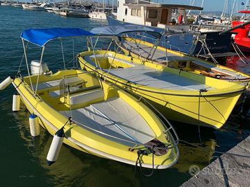 Barca completa di dotazioni di sicurezza , doccetta, cuscineria e tendalino. Completamente funzionante con pompa di sentina automatica e manuale.