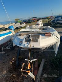 Barca molinari doppio scafo, tiene il mare in maniera molto efficiente. Vendo con; ancora, cuscini (restaurati), dotazioni 3 miglia, tendalino, doccia portatile, serbatoio doccia portarile, estensione tendalino, Motore 40 cv 2 tempo del 2008 (funzionante ed affidabile), cuffie per lavaggio, trim elettronico, stabilizzatore nuovo mai montato, remi, 4 giubbotti di salvataggio, salvagente, luce notturna per visibilita, scaletta seminuova, tappi scarico acqua nuovi, 1 porta canna, serbatoio 40 LT, pompa di sentina, ecoscandaglio, batteria nuova mai usata (sempre tenuta sottocarica) conta giri e alrtri oggetti. Barca sempre tenuta in porto in secca, lavata dopo ogni utilizzo, motore lavato con cuffie dopo ogni utilizzo. Vendo e non svendo, prezzo poco trattabile, vendo per mancanza di tempo. La barca e stata carteggiata, riverniciata e dato anti vegetativa, lunghezza 5.20 MT. Disponibile per essere visionata ed eventualmente provata, no perditempo e solo realmente interessati, disponibile per ogni delucidazione.