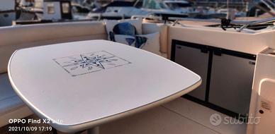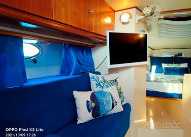 Accessori GPS Plotter Raymarine A60, Eco, Vhf, Radio stereo cd, Antenna TV con impianto ( si TV), Orologio, Barometro, Bussola, Impianto elettrico 12/220v, 4 Batterie per servizi e motori, Carica batterie Quick, Pedana poppiera, Roll-Bar, Ampio pozzetto teak con divaneria e console guida, Ampio prendisole a prua, e relativi cuscini. Tappezzeria blu, Autoclave, Cucina con 2 fuochi, Lavabo, 2 Frigo, Boiler, Scala bagno, Copertura integrale pozzetto, Doccia pozzetto, Salpa ancora con catena,