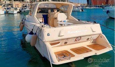 Descrizione motore VOLVO PENTA M. 5.0 G.I 2x225 hp, Anno 2000, Entrofuoribordo BENZINA con piedi poppieri, Ore di moto circa 750, Strumentazione motori completa, Filtri Racor, Manutenzioni ordinarie annuali. Velocità crociera 25 nodi. Velocità massima 29 nodi. 2013: Sbarco motori con approfondita manutenzione del circuiti raffreddamento e sostituzione collettori scarico, tubature e completa riverniciatura, Sbarco e revisione completa piedi poppieri, Rifacimento insonorizzazione locale motori, Pulizia serbatoio gasolio, Rifacimento/adeguamento impianto elettrico, Pilling carena e ciclo epoxy. 2020: Rifacimento quadro consolle comando pozzetto, Manutenzione piedi poppieri. 2023 Manutenzione piedi poppieri e turbine.