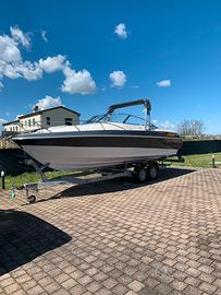 Vendesi barca assieme carrello biasse omologato per uso stradale.motore entro fuoribordo 5.0 gi 270 cv,rollbar in acciaio,radio bluetooth con 6 altoparlanti più sub con amplificatore,VHF,frigo,inverter 220 volt e presa di banchina,gps cartografico Garmin 7",luci subacquee,wc chimico,cuscini in ottimo stato e altro ancora,da vedere dal vivo per rendersi conto
