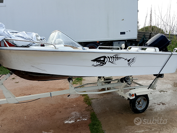 Vendo barca 4,70 + carrello stradale( da fare la revisione)+ motore Johnson 25 cv (con libretto ma da revisionare) + tutte le dotazioni di bordo.