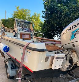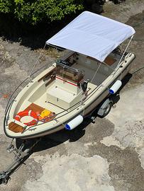 Vendo open Marino 482 del cantiere di Genova. Lunghezza scafo 4,98m. Larghezza 1,96m. Portata persone 5. Motorizzazione massima 70hp. Motorizzata con motore honda bf 40cv del 2006 perfetto con poche ore di lavoro. 6 ampi gavoni. DOTAZIONI: -Seduta. -bracket motore ausiliario. -scaletta di risalita nuova. -2 porta canne ad incasso. -4 parabordi nuovi. -Dotazioni di bordo entro le 6 miglia. -4 giubbotti di salvataggio. -Luci di via. -tromba. -2 prese USB con voltmetro integrato. -ecoscandaglio GARMIN 9sv con trasduttore GT52 e ancora un anno di garanzia. -Serbatoio da 50lt con indicatore. -Indicatore del trim e contagiri. -Tendalino 3 archi. -Pompa di sentina. -Batteria. -Tavola per ampliare il prendisole. -Remi in legno. -mezzo marinaio. -salvagente anulare con corda galleggiante. -Ancora. Barca autosvuotante. Pronta alla stagione estiva. Navigazione perfetta per le sue dimensioni. Inaffondabile grazie al poliuretano espanso a cellula chiusa. CONTATTARE SOLO SE REALMENTE INTERESSATI. PREZZO POCO TRATTABILE DOPO VISIONE. CON CARRELLO UMBRA RIMORCHI.