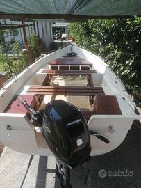Vendo barca tipo lancia con sponda alta, lunga 4,5 metri, completa di motore fuoribordo Mercury 8 cavalli e carrello stradale. Lo scafo è dotato di tre gavoni per lo stivaggio e di un prendisole rimovibile, perfetta per chi cerca comfort e semplicità nelle uscite giornaliere in mare, lago o fiume. Il motore è un Mercury 8 CV del 2017, usato pochissimo (meno di 50 ore totali) e sottoposto all'ultimo tagliando nel 2022. Da allora non è stato più utilizzato, quindi si presenta in condizioni eccellenti, praticamente pari al nuovo. Incluso c'è anche il carrello stradale, perfettamente funzionante, lungo 4,9 metri e largo 1,55, con massa complessiva ammessa di 350 kg. Nonostante il buono stato, necessita di revisione prima di essere rimesso in circolazione.