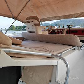 La barca unica nel suo genere, ha una predisposizione tutta su un piano, composta da: camera ospiti con 2 letti singoli, camera , bagno, cucina con soggiorno a vista. Un pozzetto degno di una terrazzo sul mare, una piccola spiaggetta con scaletta elettrica estraibile.