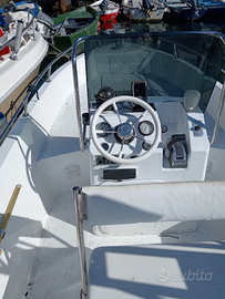 Mano 21.5 6.5mt motorizzata con mercury 115cv 4 tempi iniezione, pompa sentina automatica e una manuale, doccetta, doppia batteria, serbatoio benzina da 60lt e acqua da 50lt, luci di via, rool bar acciaio ribaltabile con tendalino (stoffa rifatta a maggio 2024), attrezzata di ecoscandaglio garmin e bussola, ottima per la pesca e per uscite in barca con la famiglia consumi irrisori, tappezzeria in ottime condizioni.