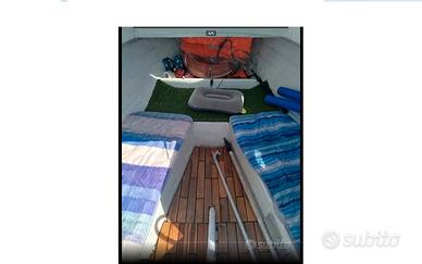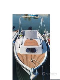 comoda Barca semi cabinata con ampio pozzetto e comodi gavoni con due postazioni interne comode ,5 metri pronta alla boa in discreto stato e al momento ancora a mare, con motore Suzuki 25 cavalli 4 tempi Gambo lungo del 2009 con accensione elettrica manetta e pilotina perfetto in tutto parte a colpo