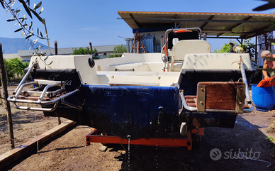 Vendo Barca Romar 450 4,5 MT con ecoscandaglio Garmin striker 4, autoradio, porta canne, etc + Motore 40/60 Yamaha 4 tempi a CARBURATORE del 2001, (non conosco le ore di moto perché l'ho comprato usato) + Carrello non omologato. La barca ha bisogno di una lavata e antivegetativo sotto, murata MEDIA non ALTA. Il motore si deve fare rimessaggio e montare perché stava dietro ad un'altra barca. Ho diversi giubbotti, ancora cime. Vendo per cessata attività di pesca.