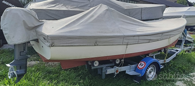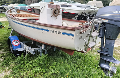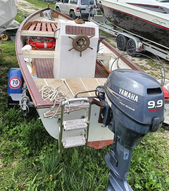 Barchino in vetroresina con inserti in legno con Yamaha 9.9 hp cavalli 4t 4 tempi e tiemo.