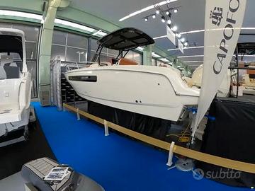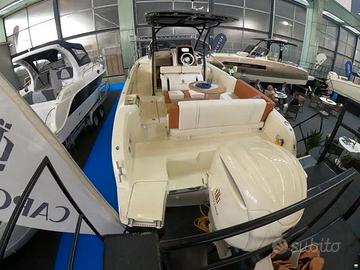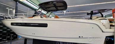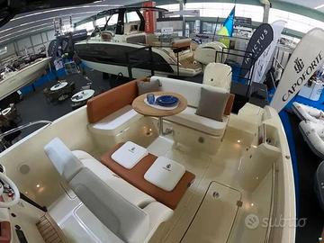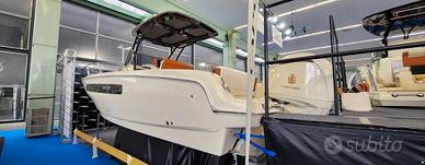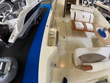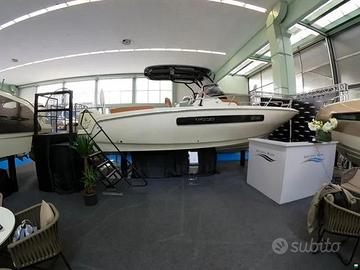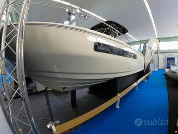 Esclusa IVA, Model year 2023. Imbarcazione nuova, DEMO! Motore fuoribordo Yamaha da 300 CV, cabinato di lusso. Il colore della barca è Personal White con cuscineria color crema e dettagli color cognac. Garanzia motori ancora da attivare. Utilizzata solo per foto catalogo. Visibile in showroom a Lonato del Garda. Possibilità di permuta. È possibile acquistarla in REVERSE CHARGE (IVA A ZERO) se acquistata tramite società. Accessori • Altoparlanti • Bimini: a scomparsa • Cuscineria di prua • Display • Doccia esterna, Elica di prua - bow thruster, Frigorifero interno • GPS: Garmin 923 xs • Lavandino nel Pozzetto • Scaletta da bagno: a scomparsa • Stereo • Tavolo pozzetto: teak amovibile • WC marino elettrico. NO COMMISSIONI!!!