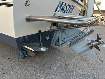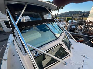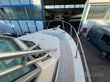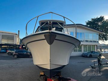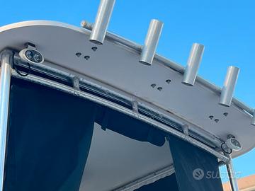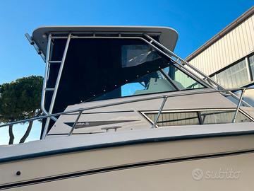 Il Grady-White 25 Sailfish del 1990 è un'imbarcazione di tipo walkaround nota per la sua robustezza e capacità di navigazione in acque agitate. Nel 1990 il modello ha subito un importante restyling con il rialzamento del ponte di comando e lo spostamento del boccaporto della cabina per migliorare abitabilità e visibilità. Bussola, GPS, Eco, verricello elettrico, stacca batterie elettronico, luci subacquee, t top alluminio, porta canne t top, fari t top, impianto hi-fi, bagno separato, wc elettrico, doccia, frigo, doccetta di poppa, plancia poppa inox + teak, trim, flaps, supporto motore ausiliario, vasche per il vivo, capottina camper completa, cuscineria interna nuova, cuscineria esterna nuova, modifica prendi sole di poppa smontabile.
