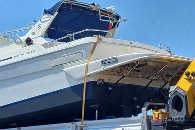 SI VENDE NATANTE MODELLO MOCHI CRAFT 33. DUE MOTORI ENTROBORDO DIESEL AIFO FIAT DA 220 CAVALLI CADAUNO, AMPIO PRENDISOLE A PRUA ED A POPPA, PLANCETTA DI POPPA GRANDISSIMA IN VETRORESINA ( VEDI FOTO), DUE CABINE MATRIMONIALI CON LOCALE WC ACCESSIBILE SEPARATAMENTE DALLE DUE CABINE, DUE TAVOLINI SMONTABILI, BANCO CUCINA E FRIGO, CARICABATTERIE CON ATTACCO IN BANCHINA PER RICARICA BATTERIE E CIRCUITO A 220 VOLT, TENDE VARIE E TENDA TOTALE TIPO CAMPER. VARI ELEMENTI DI RISERVA FRA CUI: 1 ANCORA, PARABORDI, 2 CIME ORMEGGIO POPPA CON CATENE INOX E AMMORTIZZATORI, 2 ELICHE, 1 ASSE ELICA, 1 TRASMISSIONE CARDANICA, 1 BARRA TIMONE AUSILIARIA, 1 POMPA ACQUA MOTORE DI RISERVA NUOVA, POSATE, PENTOLE, COMPLEMENTI DELLA TAVOLA. CHIAMARE ORARI LAVORATIVI