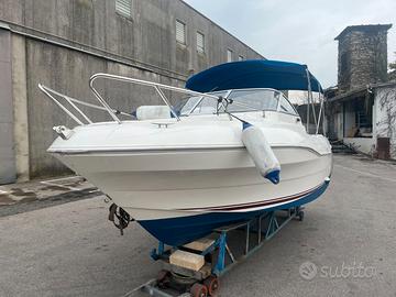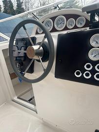 La Quicksilver 620 Flamingo del 2004 è un'imbarcazione cabinata di circa 6,20-6,45 metri, nota per l'ottimo sfruttamento degli spazi, ideale per crociere giornaliere e pesca, offre un ampio pozzetto con divano a L e prendisole, una cabina con letto matrimoniale e spesso WC chimico, pozzetto spazioso, con tavolo, prendisole di poppa e sedute, la cabina dispone di una cuccetta matrimoniale e spazio per un wc chimico, Accessori comuni: Tende da campeggio nautico, tendalino parasole, cuscineria completa, doccetta, sonar/eco. Utilizzo: Ottima come "fisher" (da pesca) o "cruiser" (crociera leggera) grazie al buon rapporto qualità-prezzo. appena lucidata. Foto marzo 2026, commissioni 5%