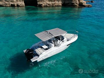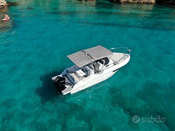PREZZO INDICATIVO - CONTATTACI PER INFO Ocean Craft 750 rappresenta l'eccellenza nell'ingegneria navale, offrendo un connubio perfetto tra prestazioni all'avanguardia, lusso e comfort. Siamo entusiasti di condividere questa creazione con gli amanti del mare e coloro che cercano un'esperienza di navigazione straordinaria. CARATTERISTICHE SCAFO Lunghezza: 7.50m Larghezza: 2.50m Peso: 1500kg Motorizzazione: 1x350 XL / 2x175 L Carburante: benzina Cabina: 4 posti letto WC: Separato con doccia ALLESTIMENTO DI SERIE ESTERNO Scafo bianco Impianto elettrico Luci di navigazione Led Asta 360 Led Cuscineria esterna Luxury 4 Bitte personalizzate con logo Gancio ad U Pannello comando interruttori soft touch Porta oggetti personalizzato Volante Luxury in acciaio con inserti in poliuretano, Scaletta 4 gradini in acciaio Timoneria idraulica Ultraflex Musone di prua 2 oblò Lewmar apribili con zanzariera 1 oblò acciaio lettino Serbatoio acque nere Sfiato carburante Pompa di sentina Staccabatteria Tromba INTERNO CABINA 2 Letti Lavello tondo in ceramica Mobile di design con apertura cassetto Porta asciugamani Porta rotolo Rubinetto / doccetta in acciaio Pannello interno cabina 3 interruttori di design LED interno cabina Mobiletto a due ripiani + 2 tasche laterali porta oggetti Cuscineria interna Scarico per doccia Serbatoio acqua 70 litri Disponibili carrelli per ogni imbarcazione NUOVI Barca personalizzabile! Finanziamento a tasso agevolato da 12 a 84 mesi studiato per te!!! motorizzabile con finanziamento a TASSO 0! INFOLINE - Ufficio Vendite e Amministrazione - Assistenza Whatsapp Visita la nostra pagina Facebook: Salento marine costruzione di imbarcazioni e il nostro sito internet per restare aggiornati. Vieni a trovarci in sede per un preventivo dettagliato! Valutiamo rientro imbarcazioni tipo open e cabin sundek dei seguenti cantieri nautici allegra eolo marinello brube laguna seca marine site bellingardo idea marine quicksilver sessa ranieri soverato ho
