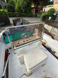 Vendesi come da titolo barca open mt 4.80 motore 2 tempi 25 cv modificato a 50 cv cv fuori bordo compresa di telo e carrello selleria in buone condizioni motore da revisionare, barca ferma da 3 anni causa decesso proprietario