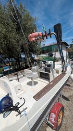 Vendo motoscafo Elan 17, barca open autosvuotante, lunghezza 5.5m. Motore Honda bf40 2022 PARI AL NUOVO (200 ORE circa) recentemente tagliandato (olio, filtri, girante e olio piede) Barca in ordine, appena rifatta antivegetetativa e trattamento parti in legno. -Impianto luci nuovo -Pompa di sentina nuova (automatica) -tendalino -Roll bar -Scaletta -Dotazioni di sicurezza A parte se interessati vendo ecoscandaglio Garmin nuovo (300€) No carrello Visibile a Gravedona ed uniti (CO)