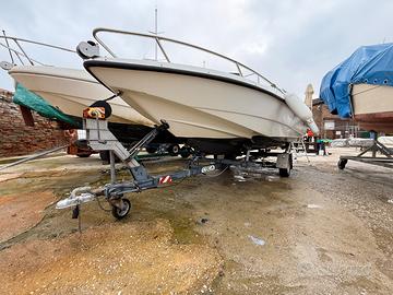 Vendo Open in buone condizioni, Ideale per pesca, uscite in famiglia e amici. Rimessata in inverno sul suo carrello e chiusa dopo lavaggio motore e scafo. Sempre tagliandata. Posto in darsena a terra già disponibile ma escluso economicamente ed eventualmente con accordi separati posto anche in acqua. Motorizzata Suzuky 40 CV 4 tempi Anno 2006 completa di manometri. Ultimo tagliando Motore maggio 2025, silenzioso e con consumi contenuti. Antivegetativa fatta maggio 2025. Completo di cuscineria pari al nuovo fatta nel 2024, Tendalino, Doppia batteria, Pompa di sentina automatica, 2 portacanne da riposo, Salvagente rigido, Doccetta con serbatoio circa 30 litri con pompetta automatica. Impianto elettrico rifatto completamente a giugno 2024. Usata fino a fine estate 2025. Completa di para bordi, Telo copri barca con bottoni su misura, Telo copri motore. Dotata di 3 vani chiusi sotto la cuscineria comodi per recare al chiuso attrezzature varie nelle uscite in mare. Carrello omologato ma da sistemare e rivisionare per la circolazione, passaggio proprietà a carico del acquirente. Barca completa, curata con molta attenzione e pronta all’uso. Disponibile per qualsiasi informazione e per eventuali visite su appuntamento.