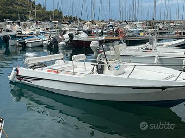 Vendo scafo di 5,10 metri in buone condizioni generali, ideale per uscite giornaliere o pesca. Prezzo: 2.300 La barca è stata sistemata l'anno scorso ed è pronta all'uso; necessita solo di un controllo alla carena. ? Cuscineria nuova ? Impianto elettrico nuovo ? Doccetta installata ? Tendalino ? Pompa di sentina da montare Motorizzazione: - Motore Honda 40 CV (BF, anno 2003) attualmente montato NON funzionante - Secondo motore Honda 40 CV (BF, anno 2007) revisionato e pronto per essere montato Ottima soluzione per chi cerca un'imbarcazione già accessoriata, con motore funzionante incluso e possibilità di ricambi. Per maggiori informazioni o per visionarla, contattami in privato.