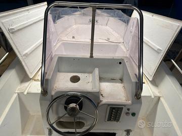 REGALO barca open con motore Johnson 70cv. Natante da 5,3m x1,85m che presenta carena in ottimo stato (no osmosi) e con piccoli lavori da rifare su opera morta. Presenta: ampi gavoni a proravia e a poppa, ancora, pompa di sentina, volante funzionante, parabordi e batteria da 80A. Impianto elettrico da rifare in toto. Motore da 70cv funzionante, piede usurato. Regalo poiché può avere una nuova vita se lavorata. Trovasi al rimessaggio a Manfredonia, io la regalo gratis ma ci sono da pagare costi IRRISORI di rimessaggio. Per info, contattami!