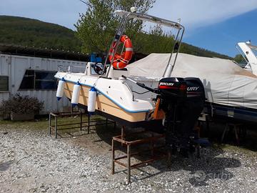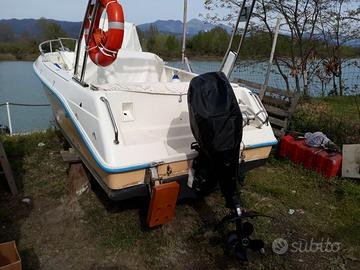 Vendo barca Mimi Fisherman 18 di metri 5,40 circa, dotata di due motori, il principale è un Mercury 4 tempi da 40 cv. , il secondo è sempre un Mercury 2 tempi da 8 cv. entrambi sono da tagliandare. La barca ha il roll bar, il tendalino la radio stereo, l'ecoscandaglio, il tavolo, 6 parabordi e due batterie + le dotazioni di bordo. Le condizioni generali sono buone al momento si trova in un rimessaggio nel fiume magra a La Spezia. Il prezzo è leggermente trattabile.