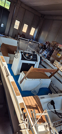 Barca open 5,5 metri autosvutante con motorino , compresa di carrello con targa e libretto , con motore suzuki 40 cv 4 tempi si guida senza patente nautica tendalino disponibile scaletta ecoscandaglio tutto funzionante.