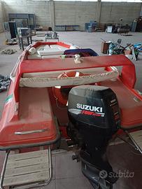 Bellissimo Open 5.50 mt con motore fuoribordo Suzuki 70cv 4 tempi, colore rosso Ferrari. Prodotto da un piccolo cantiere di Forte dei Marmi. Omologata per 6 persone. Consumi bassissimi. Cuscineria completa bianca e in ottime condizioni, prendisole anteriore, flap idraulici, alettone posteriore, plancette posteriori in acciaio/legno con scaletta di risalita in acciaio, doccia, serbatoio carburante inox 18/10 da 70 lt, impianto stereo, luci di via. 2 gavoni (1 anteriore sotto prendisole) e 1 posteriore (sotto divano di guida). Super affare vendo per mancato utilizzo.
