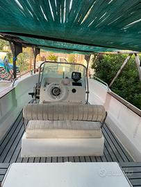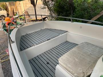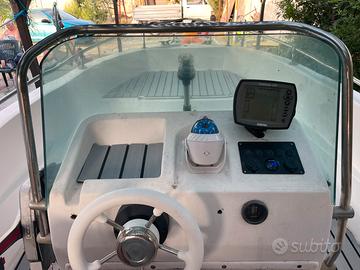 Vendo barca open 5,60 con motore 2 tempi da 40 cv. La barca è stata usata pochissimo per andare a pescare, infatti è dotata di eco scandaglio garmin con profondità variabile fino a 200 mt. È stato rifatto tutto l'impianto elettrico completamente, collegato ad un pannello o di controllo accessoriato con accendi sigari, livello carica batteria e cavetto usb, infine 5 tasti di cui uno per luci via nuove ed un secondo tasto per la bussola. Al motore è stato appena fatto un tagliando completo con sostituzione di girante dell'acqua nuova appena montata, di conseguenza cambiata anche pompetta benzina. Serbatoio benzina da 22 Litri. Carrello praticamente nuovo che ha toccato acqua si e no 2 volte. Infine la barca ovviamente è dotata di mezzo marinaio, due remi, ciambella di salvataggio, kit razzi con scadenza 2028 ed infine ancora. Vendo al prezzo di 3600 euro trattabili. Cercare anche su whatsupp 3440126196 Nicola