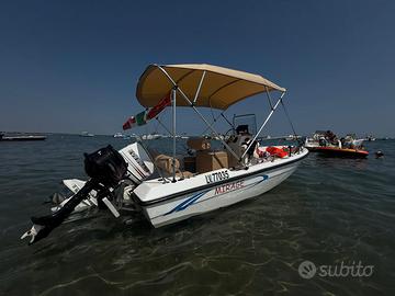 Vendo bellissimo open per gite in laguna o uscite in mare appena sistemato.compresa di carrello. Impianto elettrico tutto nuovo, cuscinerie nuove in eco pelle, tendalino nuovo, seduta nuova, motore Evinrud 70cv 2T rifatto 2017 con poche ore e appena tagliandato (lavaggio circuito acqua con acido, girante e olio piede fatto a novembre 2025 e mai usata), timoneria idraulica revisionata,luci nuove (coronamento e di via), luci a led interne, pannello comandi nuovo con due batterie (una di servizio e una motore, gestite elettronicamente per la carica), pompa sentina elettrica, carrello revisionato e vericello carrello elettrico per semplificare la messa in acqua con batteria che si carica tramite gancio traino dotato di due telecomandi per azionamento a distanza e un comando fisso nel carrello. La barca è priva di antivegetativa perchè non è mai stata lasciata in acqua. Sempre usata in giornata, lavata dal sale e tenuta in capannone. BARCA PERFETTA E PRONTA A NAVIGARE SENZA ALCUNA MANUTENZIONE DA FARE. Vendo compresa di accessori (porta canne,salvagente,parabordi cime “tutto nuovo”) No eco e no motore ausiliario. Per ulteriori info contattatemi.