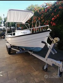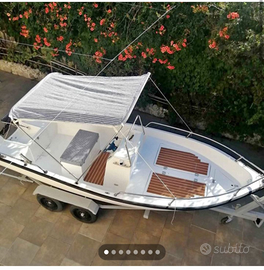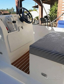 La barca ha un ampio prendisole con stiva sottostante, fornita di serbatoio da 30 lt e pompa svuotante manuale, è stata rifinita e curata in ogni dettaglio, può ospitare fino a 4/5 persone agevolmente grazie alle varie sedute ulteriori, dotata di mezzo marinaio, ancora e portacanna da pesca per traina (fino a 6 posizioni).