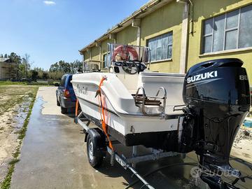 Barca Open 510 Autosvuotante – Perfetta per Famiglie e Amanti della Pesca Anno:2021 Motore:Suzuki 80 4T, imatricolato anno 2021 con solo 80 circa ore di utilizzo Questa barca open 510 autosvuotante è l’ideale per chi cerca un’imbarcazione versatile, sicura e confortevole, perfetta per giornate in famiglia o avventure di pesca • Ampio prendisole di prua,comodissimo sia per rilassarsi che per la pesca con capacità massima di 6 persone • Ecoscandaglio Lowrance Elite FS 9’’ nuovo perfetto per un’esperienza di pesca divertente • Tendalino prendisole e cuscineria completamente nuovi • Scaletta retrattile per un facile accesso dall’acqua • Diverse prese 12V per ricaricare dispositivi durante la navigazione • Tientibene inox e delfiniera di prua con alloggio ancora per maggiore sicurezza e stabilità, anche in mare formato Portacanne integrato sfruttando la timoneria principale, quattro gavoni stagni (prua, consolle, sedile di comando e seduta di poppa) per riporre tutto l’equipaggiamento. Nel gavone di poppa trovano posto serbatoi acqua e carburante, due batterie con commutatore e pompa di sentina. Serbatoio acqua dolce con docetta Inserti laterali in legno appena riverniciati, giubbotti di salvataggio, dotazione di siccurezza ancora Hall con catena e cima, teli copriconsolle e calandre inclusi nel prezzo. La barca è stata utilizzata pochissimo,tagliandata con documentazione sempre tenuta con cura, è pronta per essere usata subito. Visibile ad Oristano presso rimessaggio Fratelli Manca Cabras Prova a mare possibile solo per acquirenti interessati all’acquisto con costo a carico (da scalare in caso di acquisto). Disponibile carrello satellite basculante anno 2021 settembre da 750 kg, omologato anno sfrenato , molto semplice anche per la revisione in quanto viene fatto solo la verifica impianto luci . Gomme rinforzate nuove.