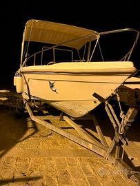 Vendo barca Open 540 guidabile senza patente con cuscineria fatta da poco motore in ottime condizioni revisionato da poco con elica d' acciaio, impianto elettrico fatto nuovo l' anno scorso , batteria nuova comprata il 13 agosto , sentina sostituita ad inizio anno da 1.100 UP, impianto musica casse altoparlanti da 200 Watt ciascuna, luci a led interni , doccetta acqua dolce con recipiente da 20 litri