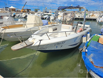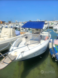 Motore anno 2018 con poche ore di navigazione. Barca dotata di ecoscandaglio gps della Garmin e di portacanne , tettuccio rigido allungabile Adatta per la pesca ma anche a delle belle giornate di mare . Barca molto pesante e stabile . Sarebbe importante per chi ha la patente fare installare un motore piu grosso ,un 100 cv già andrebbe benissimo per avere una resa ottimale. Ma attualmente 2/3 persone naviga a 22/23 nodi come velocita'. Fornita di cuscineria. No carrello. La barca e' perfetta e il motore e' tagliandato da 2 mesi.