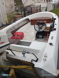 Vendo open Molinari 4 metri con motore Johnson 737 40 cavalli bombardier appena fatti tagliando doppia chiave e libretto....avviamento e trim elettrico la barca e pronta per navigare ottima per pesca oppure per giretto in famiglia..il carrello non è in vendita ma posso trasportare nel raggio di 30 km completa di serbatoio impianto elettrico e stacca batteria per info o altre foto anche whatsapp 3408306967