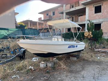 Vendo barca open astra 150 di 5m, la barca è in buone condizioni, impianto elettrico perfettamente funzionante, luci, impianto stereo, stacca batteria ecc, la barca è senza cuscini, ha un'ottima resina resistente e forte, e ha un'ottima tenuta del mare. La vendo senza motore, ma c'è possibilità di averla con motore johnson 40cv 2 tempi a 3500€. Prezzo non trattabile. Possibilità di trasporto a parte.