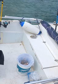 scaletta, pompa di sentina, luci di via e 360°, doppia batterie, stacca batterie, porta canne, doppia ancora, circa 100 m di cima, carrello da cantiere,