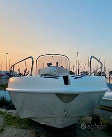 barca usata open molto spaziosa dal grande prendisole di prua, ideale per gite giornaliere con la famiglia o escursioni.