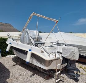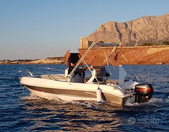 Vendo come da foto barca Open Bluline 5.7 mt impianto stereo dotazioni di bordo doppia batteria con commutatore doccetta 60lt di serbatoio, sentina, impianto luci, tavolino in legno con piede in alluminio, cuscineria completa motore evinrude e-tec anno 2016 entrambi. Poche ore di navigazione, la vendo per non utilizzo. No scambi