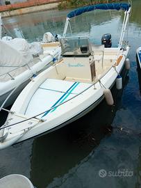 Barca Open Capelli 17 - Pronta alla Boa! no patente , un modello noto per la sua stabilità e funzionalità. L'imbarcazione è autosvuotante, ideale per la pesca o per uscite giornaliere in tutta sicurezza con ampio prendisole di prua