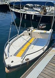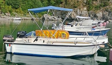 Vendo barca open di 4,5 metri, ben tenuta e dotata di cuscineria, tendalino e motore 2 tempi, oltre dotazioni di sicurezza complete, scaletta per salire dall'acqua. La barca viene venduta unitamente ad un carrello Ellebi omologato, ma non revisionato, utile per il suo trasporto.